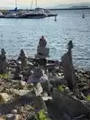 There were a few groups spread out on the grass in the parks, and people trying to stack rocks and sticks along the water (some more successfully than others).