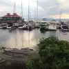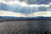 The view the evening we went was perfect. Little cool with a light breeze blowing but very beautiful. We sat and looked at the mountains and enjoyed the boats in the water. Nice place and very peaceful.