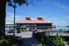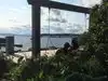 Beautiful views of water and mountains. Ferry to other areas available. Seating with tables at restaurant and also walking path was nice.