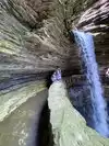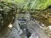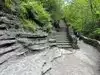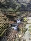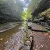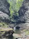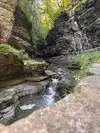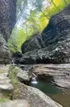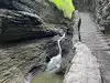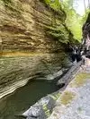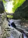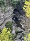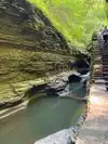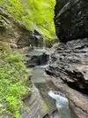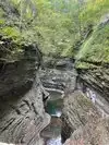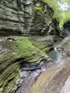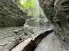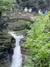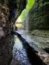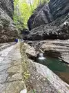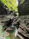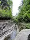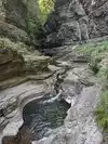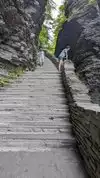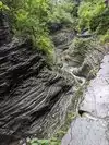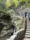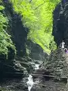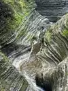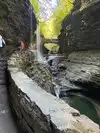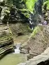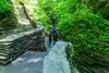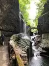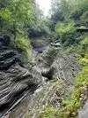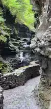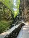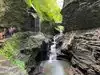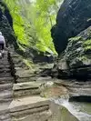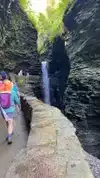 Watkins Glen State Park was amazing. The park office said they were in a dry spell so the steps and walkways wouldn’t be wet and though some earlier reviews said a rain jacket might be needed due to continuous waterfall spray - we left in car and it wasn’t needed. Glad we wore hiking boots as the terrain is uneven and some trail areas were still wet and muddy. That being said. Because it’s a narrow gorge the waterfalls and terrain were still gorgeous. The CCC built the 800+ steps, switchbacks, bridges and pathways in the 1930’s and they have weathered well. At one point you can walk behind a waterfall. We are in our mid 60s and didn’t want to hike round trip so we parked at the bottom lot and took the shuttle to the top, walking down the gorge vs up. We were glad we did but you do have to stop and look back or you’ll miss some of the amazing features and falls. I was glad I had a light weight long sleeve shirt wrapped around my waist as I did need it to protect my camera on one stretch where water was spaying down from overhead, including on the pathway. Other reviews said go early. We meant to be earlier but didn’t get to lot until 9 am. We were able to park in first lot but it was filling up. Glad we started at top because the later crowds were coming from the bottom so we had less traffic to start. By the time we were at the bottom there was a heavy traffic of people. Many were not properly prepared wearing flip flops and clogs while holding babies. Wear at least decent tennis shoes and have babies/toddlers in front or back pack. We also had walking stick which helped on uneven or loose rock pathways.