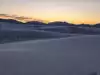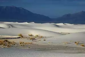 White Sands National Park in New Mexico is an interesting landscape near mountains. Ideally book an overnight stay in Alamogordo and visit the National Park early in the morning at sunrise.