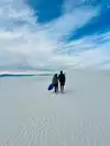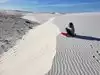 Fun 'sledding the dunes'. Sleds little pricey, 24.99, 19.99 if you can get a used one and wax is 2.99. They say if you return sled you get 5.00 back - not cash though. It is to use in the gift shop. If you are lucky, you can find someone to sell or give to. You definitely need the wax! We waxed our sleds every couple of runs. Hard to believe all that sand/gypsum surrounded by mountains. Glad we went! Definitely take water, sunscreen, hats and sunglasses!!