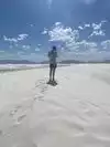 Huge white sand, barefoot, you feel like children in a large square of soft sand. Beautiful sites of Picnic. It's quite windy, no shade so bring a hat, plenty of water and sunscreen.