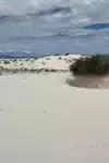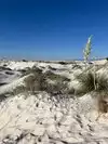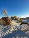 First if coming from the west (Arizona etc.) get gas in Las Cruces. We were told there was gas within 15 miles of the park and there is.... coming from Alamogordo. This is a long boring 30 or 40 miles from Las Cruces to the park across the White Sands Missile Range. No scenery barely a curve or hump in the road. But worth it. this park was amazing. it was like being in a big snowstorm as the sand is white as snow and drifting everywhere. The roads are even white although they are plowed twice a week. We had a good time here.