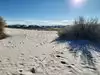 Take care not to visit here during very hot temperatures. Otherwise a large public expanse of gypsum sands shrouded by the missile test range. The visitor center offers a film and also has a cast of ancient human footprints. Along the loop road there are several designated foot trails, one a 5 mile deeper desert loop. There are also areas for sand play as well as camping and wilderness trekking. The interdunes trail is a sandy loop marked by poles to facilitate the way around. At times, rangers offer special hikes. Check with the VC. And remember to carry water.