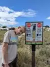 But since we had liquid car wax in the trunk, we wiped off the wax with WD40 (who DOESNT have both of those in their trunk LOL), applied car wax, buffed the bottoms to a shiny, smooth finish, and gave it another college try. We DID manage to make it down the biggest incline we found (at the Alkali trailhead) at a spectacular 2.2 mph. Riveting. Got a few videos and headed out. Too bad I can't load them. I find them quite hilarious. :)
