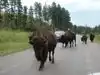 Of course, being right off the side of the road, gawkers *such as ourselves) were quick to take some snapshots and pus the boundaries and try to get close to the animal. One fellow got a little too close, which made the Bison a little hot and bothered and that resulted in much yelling by the local ranger trying to make sure none of us idiot-ed ourselves into injury from the animal.