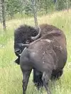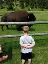 After doing their business, we noticed a brown mass near the side of the road. Separated by a laughably feeble fence that gave the people around us a way more secure feeling than it should have, we found ourselves feet away from a large lone make near the head of the trail. Apparently he was kicked out of the heard and was a loner (or so the nearby ranger told us)