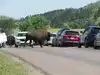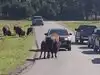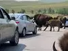 They are gigantic creatures, and very much at home. The stroll right past you car without a care. All of the kids were awed by them.