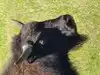 At first I thought it was a small bear, but its body was longer, it had a dark long fluffy tail, and shorter legs. Its face and ears were bear like, as it turned its head towards us. It studied us at length one of the times it glared towards our car from about 100 yards away. We didn't get a picture of it sadly.