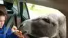 Just a bit farther down, the burrows were out in the road begging. Granddaughter got out to pet them when we saw folks out of their cars. The burrows were downright docile. She loved it.