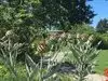 There are many beautiful giant trees along the shore of the river, an ancient cherry tree, and a flower garden with roses and flowering trees, and many green areas to sunbathe.