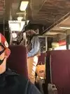 Service attendant in our car was young and inexperienced (Adriana)-kept laughing at herself. She announced in advance when the skit men were going to rob the train- and literally begged for money to be in plane sight so the robbers could take the money