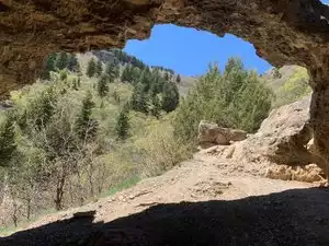 Probably the most popular trail in Logan Canyon. It used to be called “Witch’s Castle”, and the folklore surrounding the area is that a witch haunts that part of the canyon (I like to tell my kids that story when we’re near there 😁). The trail is very steep going up, but once it levels out towards the top, you get great views of the canyon. The real show is the “cave”, though- a beautiful arched rock formation framing mountain views. You can easily walk into the formation, but it literally sits right on the edge of a cliff, and the ground slants gently downward towards the drop off, so mind your footing, and watch children very closely if you decide to bring them. You hike back down the same way you came up. I am middle age, in pretty good shape, and this hike takes me a couple of hours round trip, including time spent at the top and a break or two here and there.