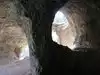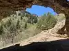 A very unique cave with arches. The path is pretty good but a bit rocky and quite steep. There is quite a bit of tree cover for shade. It is a good work out doing the 1.8 miles up to the top. We spent 2:15 for the hike up exploring and the hike down. I was with a very fast 12 year old. We explored for about 20 minutes or maybe a little more. There is only one place on the path where you can see the cave while doing the hike. It's where the trail widens out to about 15 or 20 feet. Looking up the mountain, the cave is just to the left of the two rocky ledges that you can see for much of the hike. Once up at the top, If you take the little trail out onto the bluff next to the cave, you can get a nice view of the caves (see my pics). I would warn parents with small children to hold on tight to them. The floor of the cave is quite steep rock with lots of dirt and small rocks covering it making it a bit slippery. The mouth of the cave is a drop off so be careful. We started just after 10:00 am on a Saturday and the parking lot was full. There is a 2nd parking lot just west of the trail head. We were the only car in that lot. When we got back just after noon, that lot was also nearly full.