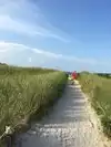 After our trek from parking, we had a hard time finding an access point to the actual beach. After a while, we found out you can get to the beach from three points: the end where the snack stand is, a path through the middle of the dunes where there is a “2” marker, and the last at the end of the resident parking section. Once on the beach, we found it to be very clean and the sand was very soft. The beach is kind of split into 2 sections by some big rocks in the middle of the beach. The kids can climb on the rocks but two of three of my kids sliced their toes. So, wear water shoes if you're going to climb on the rocks. There are hardly any shells on the beach for collecting but there are some near the rocks. No boogie boards or any floatation devices are allowed.