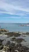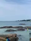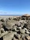 Quiet day, beach is lovely. There are several rocks to wander around and on. Beach is smaller when there is high tide. But you can walk out very far at low tide. Enjoyable afternoon.
