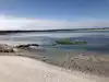 Amazing stretch of beach sheltered from the land by dunes. Great!! Seaglass picking! Very cool it low tide.free parking and portopotties.