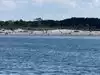 Didn't realize until after we got to this beach the importance of it facing north. We had a chilly wind blowing on shore from the water. Fortunately the sun was hot so it turned out to be an OK day. Loved being there at low tide which allowed us to walk out hundreds of yard into the water. However this beach, unlike Good Harbor Beach, was used by several day camps and it had a lot of children noise. If looking for a quieter beach, don't recommend this one.