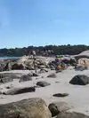 If you think you are going to keep your kids near you building a sand castle, think again, there is no room. However once the tide lowers, this place enlarges by acres and has a sand bar that you can walk all the way out to the Cape Anne point, plus tons of rocks and inlets to explore and find hermit crabs etc. Another good thing is there is a ton of life guard coverage all over the beach and even the rocks so plenty of coverage for the masses of people that come here. The water is moderately warm in spots and cold in other spots. There is also really not a lot of waves or an undertow so kids can go farther out and it is pretty shallow. There is a snack bar onsite with burgers, fries, ice cream and Italian Ice carts around the beach as well as a souvenir beach shop selling all sorts of things. The place has public restrooms and porta-potty's for use near the parking area. Not a bad place to visit despite the crowds and popularity of this place.