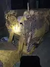 The highlight of the visit was an underground tour. They offer two tours, one to the 65 foot level and a second tour to the 100 foot level of the Orphan Girl Mine. We took the 100 foot tour. When we paid for our tickets to the tour, we were each given a metal tag on a chain to serve as our “ticket” to the tour. We started our tour on the surface and saw the man skip and the two ore skips From there, we went in the dry change room, the office and the winch room. Then, we headed over to the mine portal. We were each given a hard hat and an LED helmet lamp. We also had to hang our metal tag and name slip on a pin in the office. We left our hats on the hard hat rack. Our tour entered the mine in a new sloped tunnel built by the tech students which went underground to the location of the shaft 65 feet from the surface. We could step in the man cage at that level. We continued down to the 100 foot level and came to the other side of the shaft. The water level in the shaft was within about 4 feet of the floor, about 104 foot level. When the mine was closed, the pumps were turned off and the mine filled with ground water seeping in. The mine water in this mine is clean and can be pumped out and disposed of without treatment. The Orphan mine is isolated from all the other mines by an impervious rock layer. The water in the Berkeley pit and the other mine shafts is heavy with metals and sulphur and needs extensive treatment before it can be pumped out to the river. The man cage had doors on both sides and held seven miners. At this level, they had an operating mine locomotive which was battery powered and dated back to the 1920's. Our tour gave us some history of the mine and showed us a mucking shovel and ore car which the students are still using to extend the tunnels for the museum. They also had a drill set up. The tour took about 1-1/2 hours.