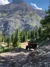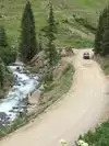 We started up and it was okay at first. But the trail got rougher and scary near the top. You need to take a four wheel drive vechicle. There's beautiful streams, lots of mountain views, and narrow roadways. The drop offs of these road ways are hundreds of feet down, you have to respect other drivers, and find places to move off the trail, & move over for others. The dust is terrible from other drivers, so take a painters mask to cover your face. Just my own advice.