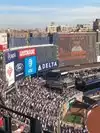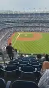 We hey good money for our tickets on the second level which by the fourth inning of the Yankee game became flooded with a group honestly a thuggish fellows who played musical seats stood up in front of everyone ruining our view and ruining the event and if the Yankees have any kind of security or crowd management that were not evident. We wondered how they got into the section when they clearly were not ticketed.