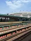 The train station by the stadium is three minutes away from it. Security line was quick and short.