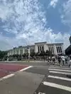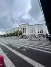 It's worth taking a moment to see it, even if it's just briefly. Right across the crosswalk from GATE 4, there's a park with a soccer field, offering an incredible view of the stadium's exterior.