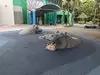 The hippos in a minimal pool, barely entered. It would be good to think more about animals.