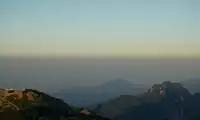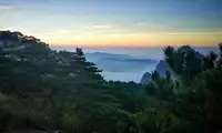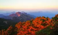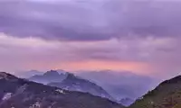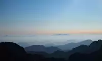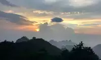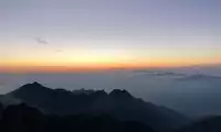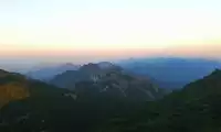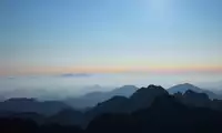 Guangmingding is not the main altar of the Mingjiao in "The Heaven Sword and Dragon Saber" (Kunlun Mountain), but it is very famous. Looking at the flying stone on Guangmingding, it looks like an ink painting after a light rain. The sky gradually darkened, and there was no sunset, only a touch of red clouds on the horizon. The scenic area predicts that the probability of watching the sunset is 40%. It seems that I am not lucky enough to watch the sunset today. I was awakened by the alarm clock and hurried to the window to check the weather. Fortunately, it didn't rain. I went out to try my luck. The sky was still dark, but there were lights on the steps along the way. There were not many people on Guangmingding. I came to the location I had scouted the day before. The sky was slightly bright, but the clouds were very thick; with a little expectation, I watched the sunrise in the east. It felt like the sky was bright, but there was still no sunlight. Just when I wanted to go back, I found that the rising sun flashed in the clouds, and was constantly blocked by the clouds during the rise. The orange-red sunlight was warm and soft, and it was fleeting. I waited until the sky turned white, and I was reluctant to leave Guangmingding. Yes, it depends on luck to see the perfect sunrise.