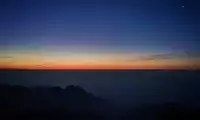 The alarm clock set off at four in the morning. After hurriedly washing up, we set out to climb Guangmingding at 4:40 to watch the sunrise. It was still dark and the moon was still clearly visible.
