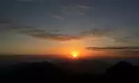 If you come here with the novel Guangmingding in mind, then this Guangmingding will definitely disappoint you. But the scenery here is good, and it is indeed a good place to watch the sunrise and sunset. We came up at 17:30 (the campsite is not far from Guangmingding, but to be honest, it feels more tiring to climb the mountain after resting), and the mountain was already full of people. There was a small picture that touched me. On the stone on the top of the mountain full of tourists, a foreigner couple was still kissing passionately for a long time, very long, very romantic. At this time, it was already difficult to find a suitable position to watch the sunset. Finally, I found a position when the sun was about to set. A child said there were ants and was afraid and didn't dare to stand, so I squatted to watch the sunset. The sunset was good, and I recorded it all. However, it also attracted ants and made me itch. The next morning, I followed the crowd to climb up. When I reached Guangmingding, there were many people again.