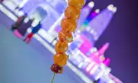 There are vendors selling snacks, such as candied haws.