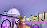 It is mainly composed of various ice buildings, with a stage for performances outdoors, a fashion show indoors, an ice rink, and a small slide for children to play on.