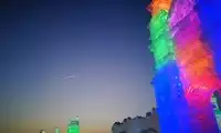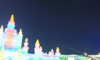 The Ice and Snow World beside the Songhua River has bright lights that you can see from afar. The crystal clear ice castle is magnificent against the backdrop of the lights!