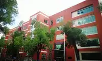 The campus is open, and the middle avenue is a road tunnel that divides the school into two halves. This is just one of the campuses.