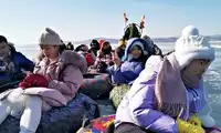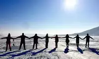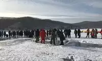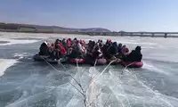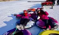 After getting off the snow tubing, we boarded a flatbed truck. Fifty of us were transported to the center of the lake to watch others engage in winter fishing. Of course, this was a small-scale fishing operation, with a single, 0.5-meter-diameter hole in the ice. The nets were constantly pulled out, and every meter or so the net would pull out a fish, each at least 30 cm long. The ice was slippery, so be careful. After watching the winter fishing, we returned by the same route and transportation. Han, who had been driving with us on our departure, didn't ride the snow tubing on the return trip. A single trip cost us 10 yuan. On the way back, Han's 17-passenger van was drifting on the ice, and we screamed in the car.