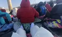 Brother Han said that the ice layer of Jingpo Lake is more than 1 meter thick. To make snow circles in Jingpo Lake, you need to use a tractor with 50 snow circles towed behind it to pull you from one bank of Jingpo Lake to the other. We all sat facing the thick ice. The wind was too strong, so we had to move our backs and our woolen hats were not windproof.