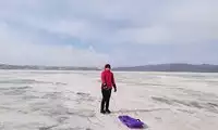 In winter, Jingpo Lake is completely frozen, its thick surface crisscrossed with white cracks. The distance from the lakeshore to the winter fishing area is quite a distance, and the transportation is quite unusual: we sit on snow rings pulled by a tractor, racing across the ice, stirring up pieces of ice.