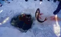 The basic procedure for ice fishing is as follows: first, the net is lowered on the ice. An experienced fishing officer, basing the fishing net on the ice based on its color, then pokes holes in the ice. The net is then passed under the ice, gradually closing the net, and finally, it is pulled back to the surface at the exit. This process sounds simple, but it is actually quite complex.