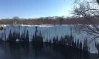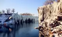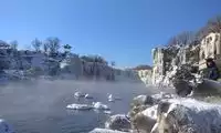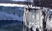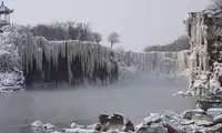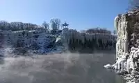 The best scenery is the small circle of Diaoshuilou Waterfall. The river water that has not yet frozen flows through, and the temperature difference causes mist to evaporate on the water surface. The water vapor condenses into icicles on the high ground by the lake. This scenery is much better than the flat ice surface on the other side of the lake.