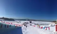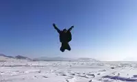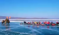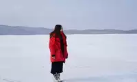 The vast lake was frozen solid. While not translucent enough to reflect anything, the bright white shimmered beautifully in the sunlight. The ice was slippery, so I could only move slowly. The lake was vast, and the wind howled, threatening to blow you over. The ice fishing wasn't particularly impressive. A large hole was carved through the ice, and a fine net was lowered. Whenever groups of tourists gathered, they would reel in the nets and catch fish. The return trip involved riding a rubber band, a rather novel experience.