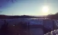 It's actually a large frozen lake, and they offer ice activities in the winter. It's very cold because there's no cover on such a large lake.