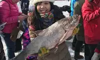 You have to take a car to the center of the lake to see the winter fishing. The fish are very big and very special.