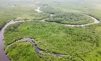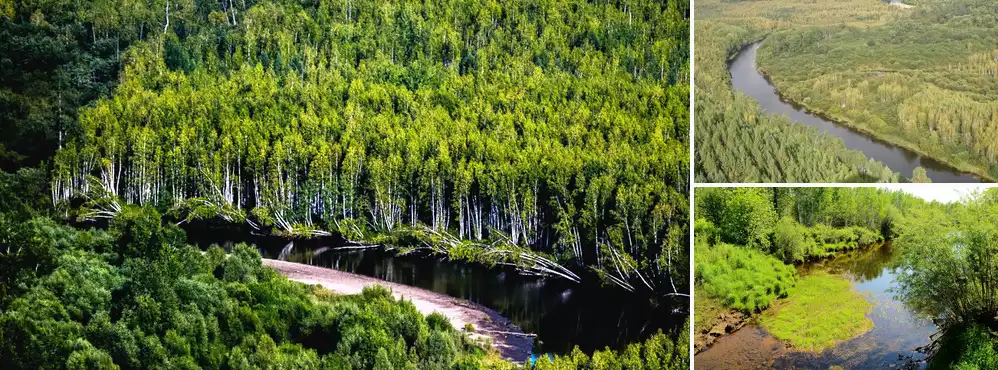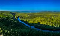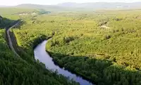 I don't know what kind of river it is, but the way it winds its way through the dense forest is quite beautiful. I imagine it would be even more stunning in autumn.
