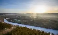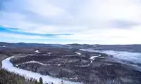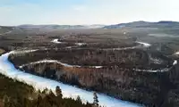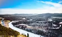 It is a naturally formed pristine wetland. Park your car and climb to the observation deck for a breathtaking view of the magnificent winding mountain, with layers of pine trees on the mountain and the icy river winding its way. The commanding view is truly breathtaking.