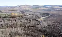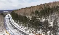 On the other side of the wetland are the forests of Daxinganling and the Jiamo Highway that passes through it.