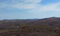This is a rather unreliable scenic spot. Most scenic spots in Inner Mongolia are privately owned. The driver told me that a certain businessman had enclosed a plot of land, built an observation tower, and then blocked the road to charge for use as an attraction. The entrance fee is quite expensive, not worth it. Just enjoy the scenery along the way. The view from the observation tower over the winding path is quite ordinary. The leaves have all fallen, and the gray soil mixed with the bald birch trees has a very bleak autumn feel. I wonder what the scenery is like when the leaves are still there. I counted, but where are the eighteen bends? Why aren't there eighteen? Why is it different from what everyone else counted? Could it be that my math teacher is actually a physical education teacher in disguise?