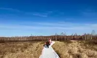There is a winding wetland near Mohe. Looking at the wetland from a tower, it feels a bit low. The water in the wetland, or the bends and turns are not obvious. Two kilometers away, you can walk on the plank road to get close to the wetland, and see many wild flowers and birch forests.